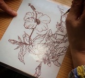 塗り工程の後に、余った漆で練習するとよいです